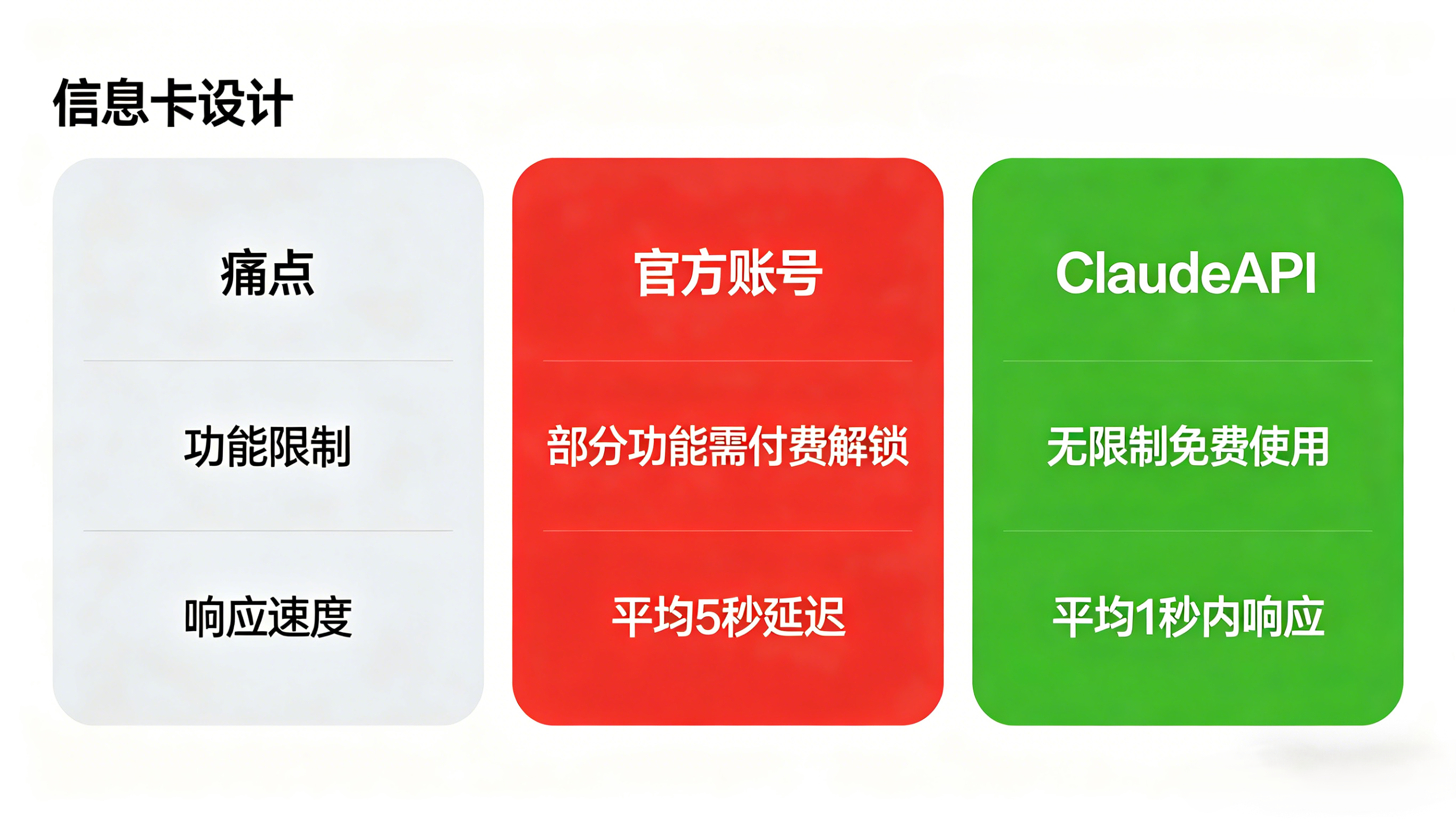 | 痛点 | 直接使用官方账号 | ClaudeAPI |