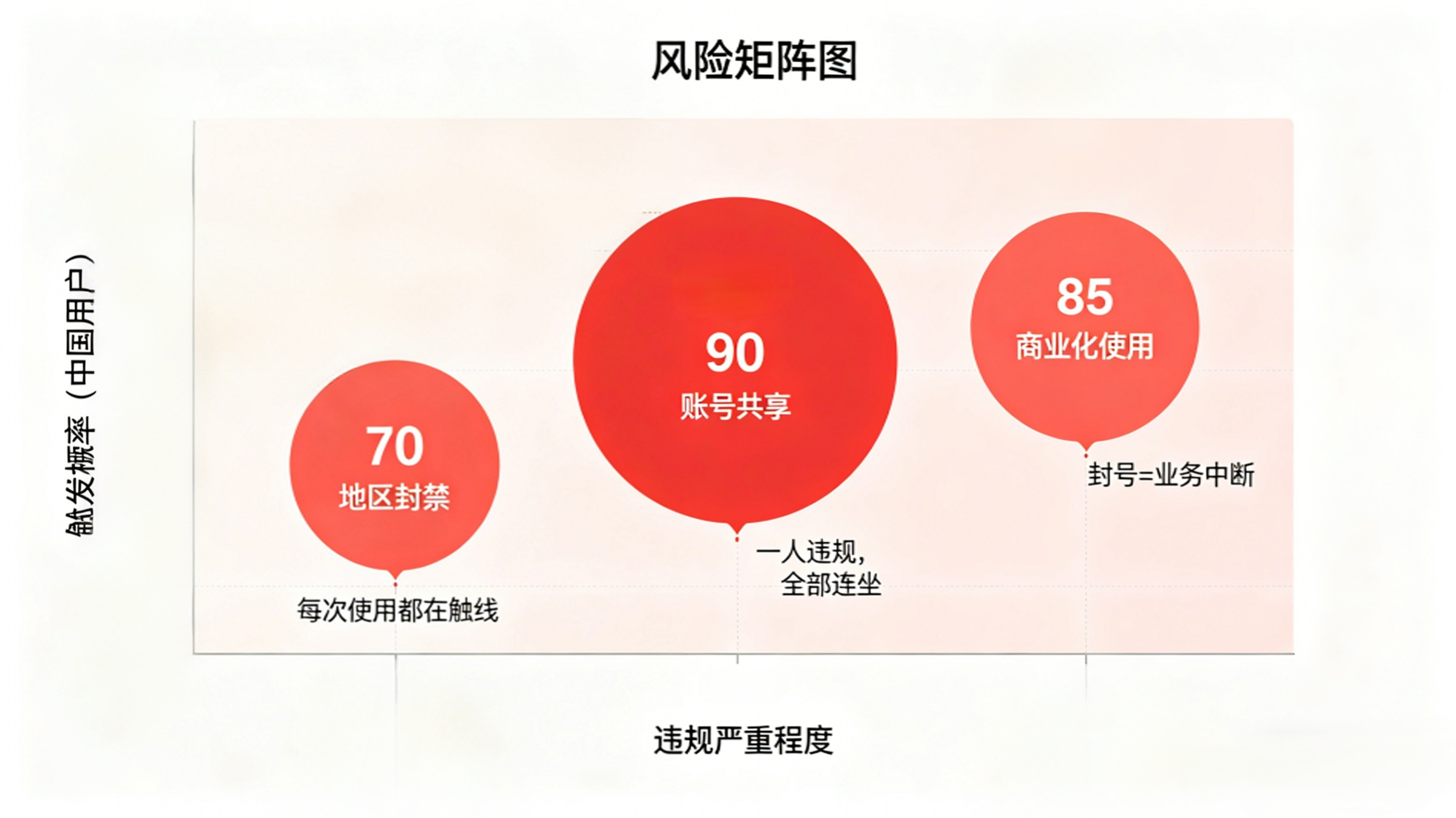 | 账号共享 | 自己可以控制 | 🔴 极高(灰色渠道盛行) |