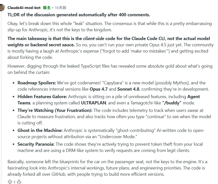 这次消息并非完全出乎意料。早在 3 月 31 日,Claude Code 的 npm 包中意外包含了 source maps,暴露了约 50 万行内部 TypeScript 代码。