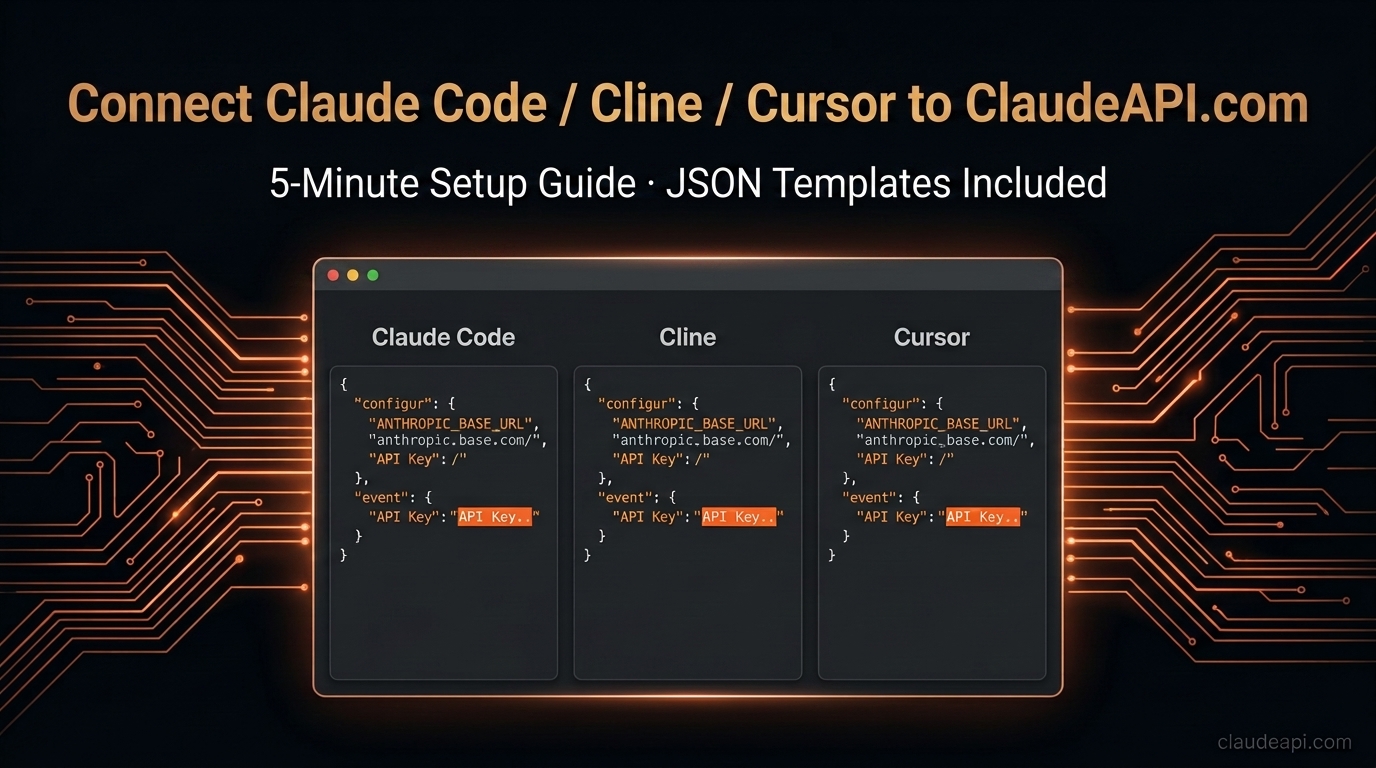 Connect Claude Code / Cline / Cursor to ClaudeAPI.com in 5 Minutes (Copy-Paste JSON Templates Included)