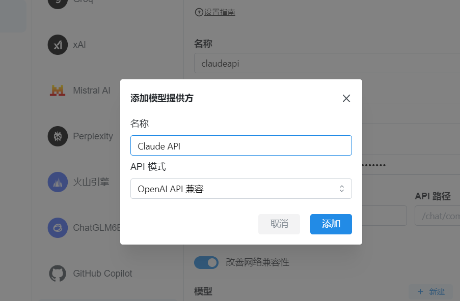 添加模型提供方(OpenAI API 兼容)